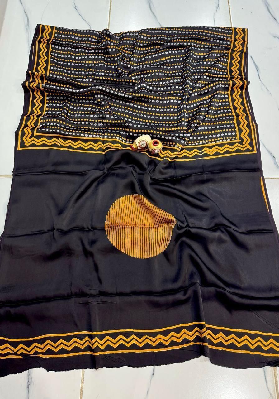 Ajrakh modal silk sarees are hand-block printed using natural dyes in intricate geometric and floral patterns. Made from soft, lustrous modal silk, these sarees drape elegantly and offer a luxurious feel.