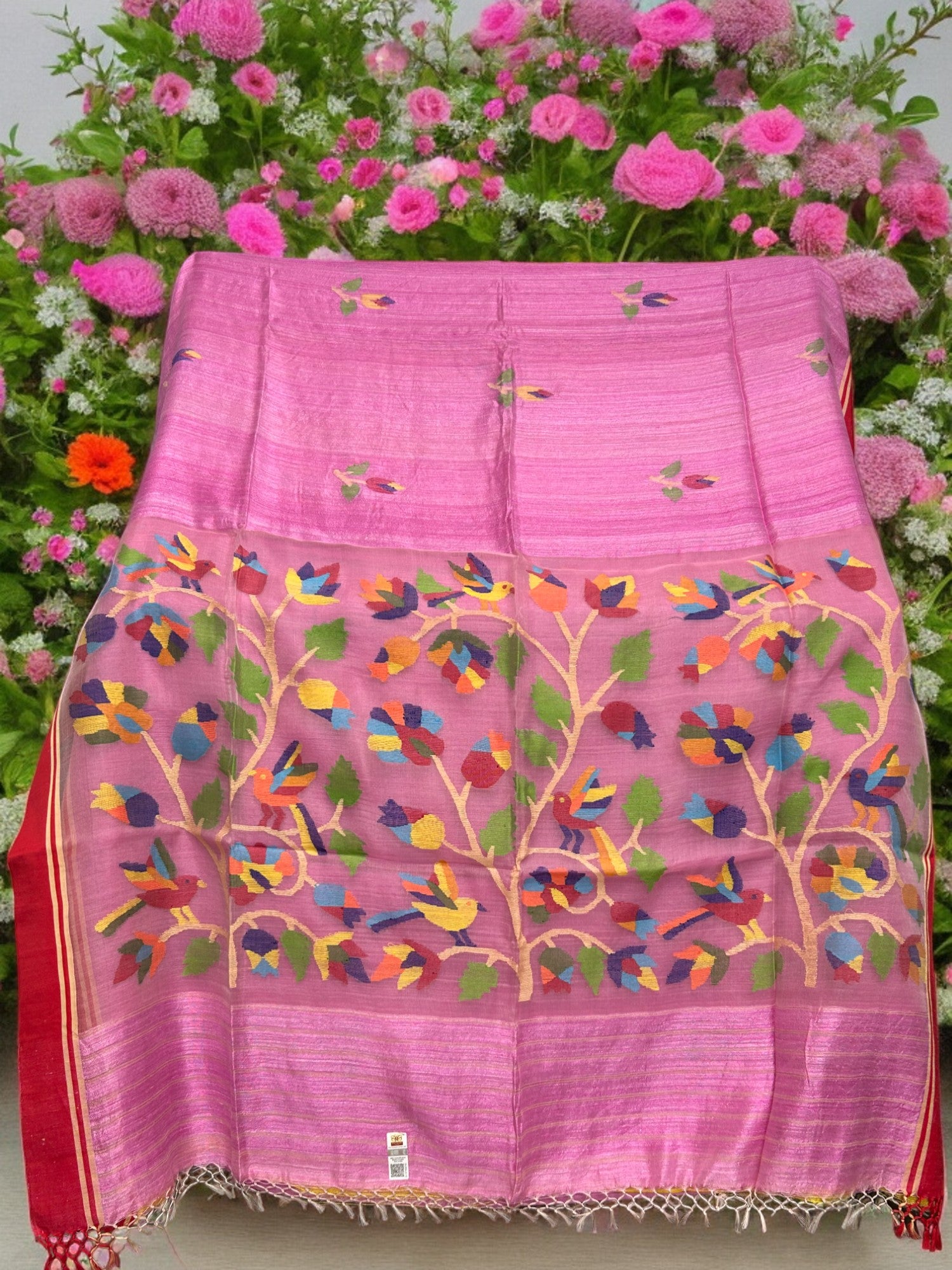 Pure Matka Silk - Floral motifs - Pink