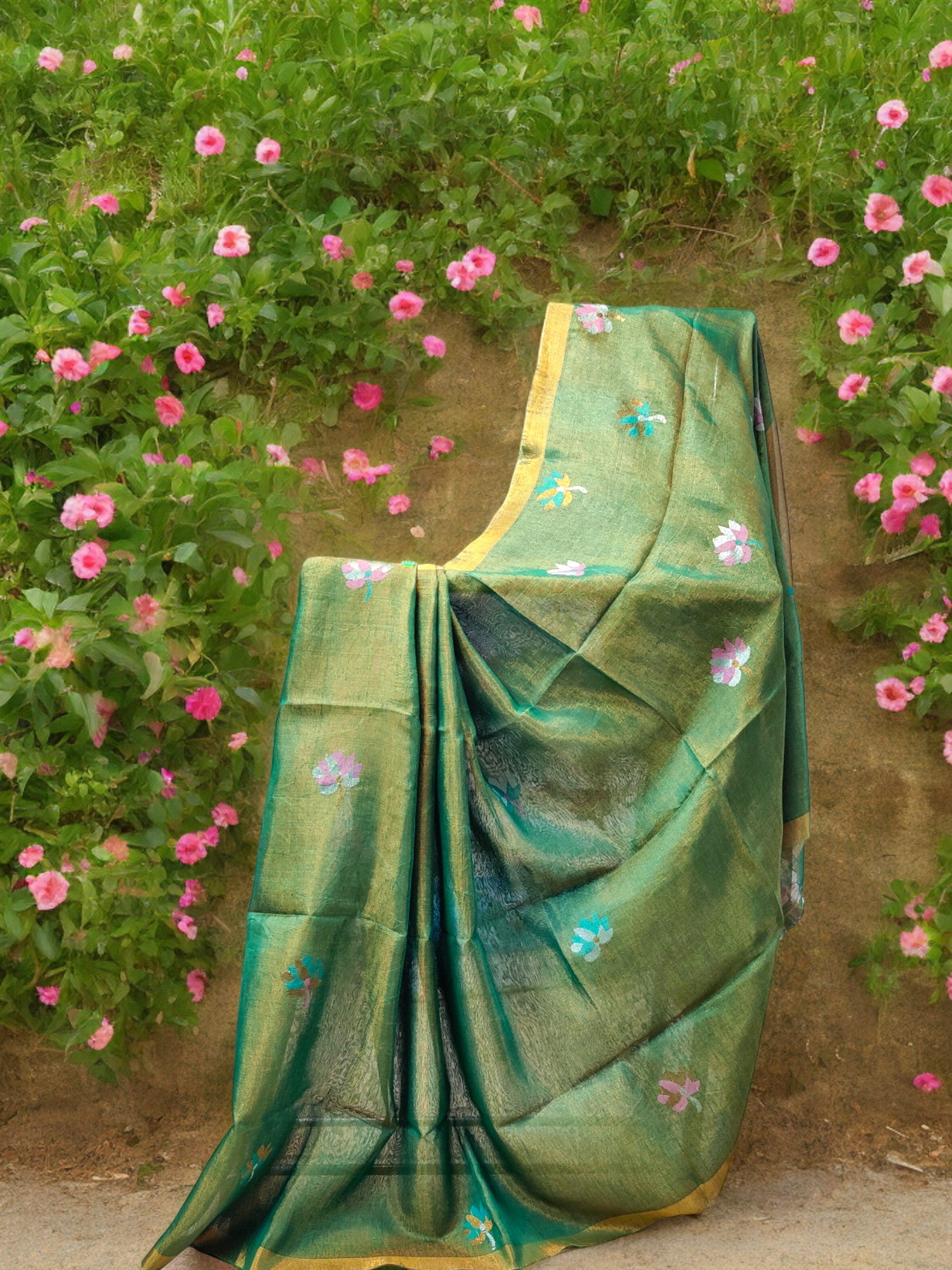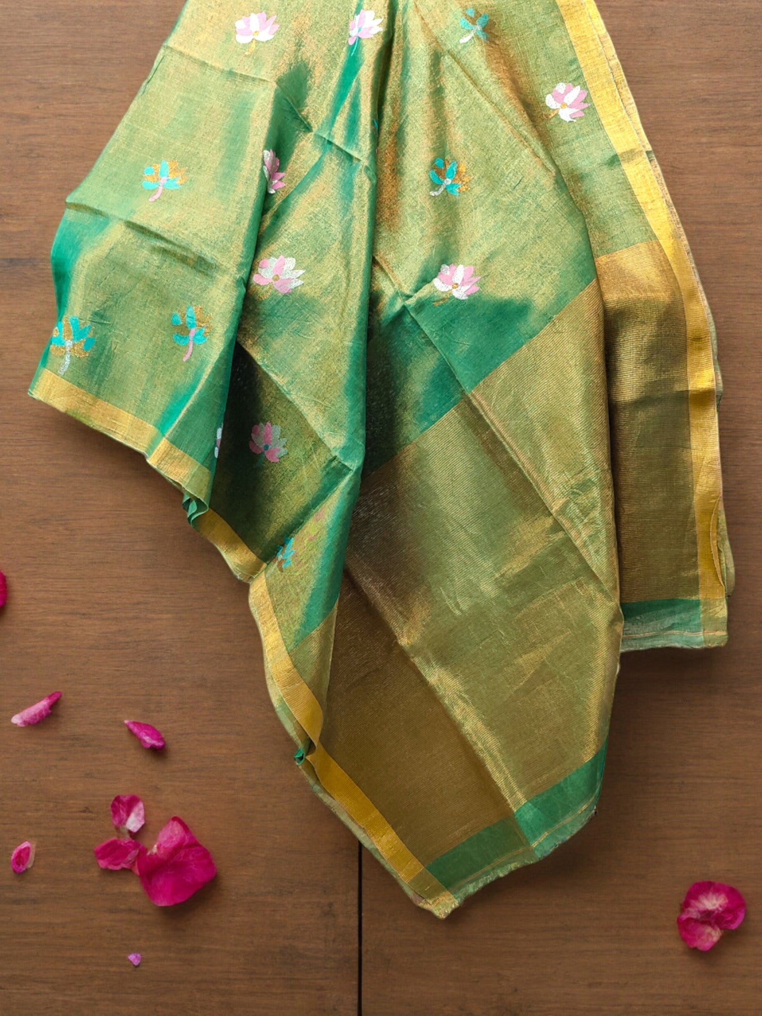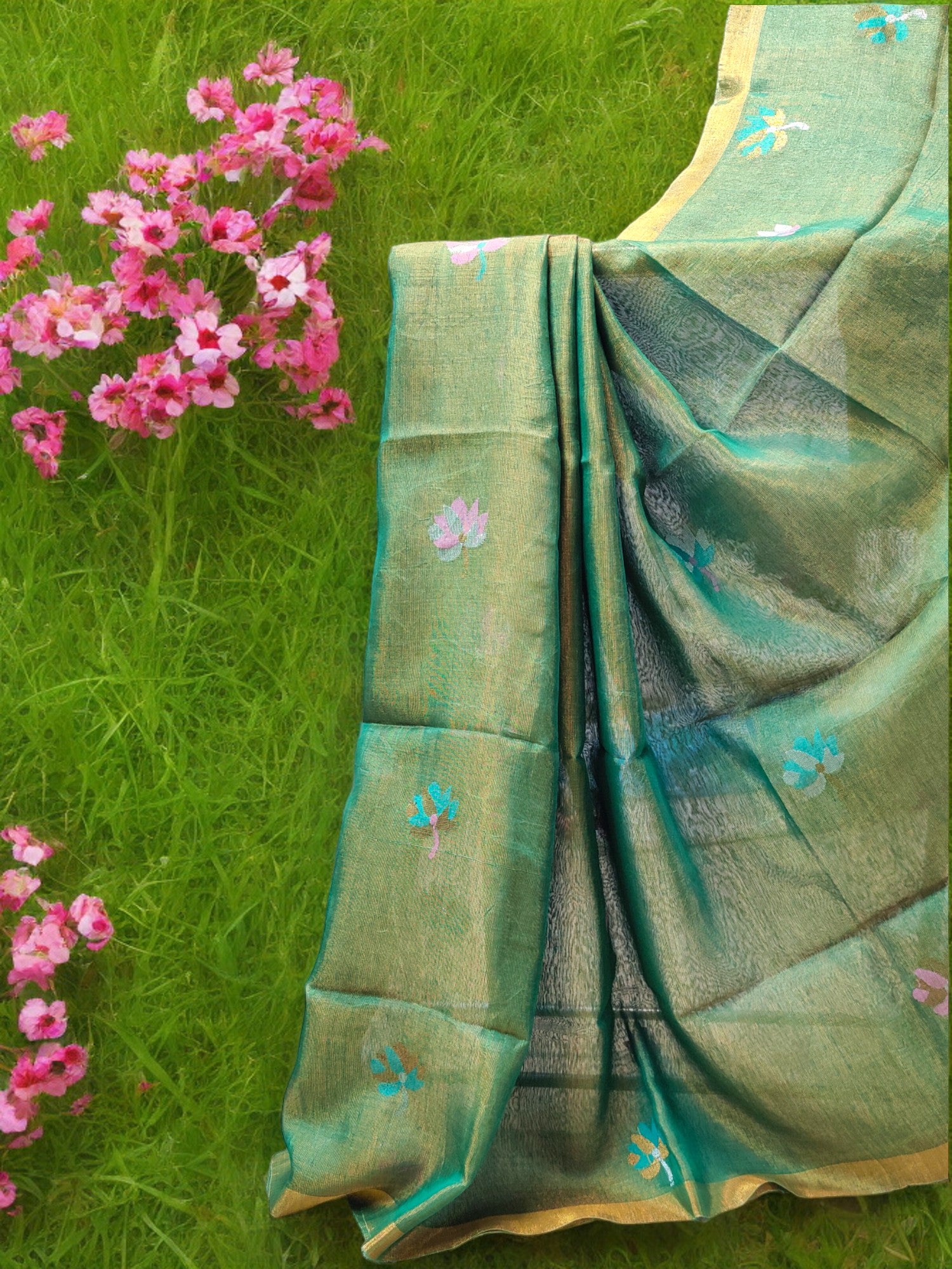 Tissue Linen Saree - Green